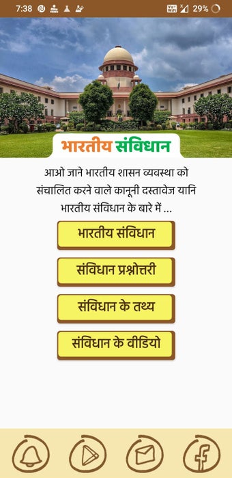Denna app är en omfattande informationskälla om den indiska konstitutionen. Här hittar du alla artiklar, underavsnitt och kapitel i dokumentet. Du kan också läsa alla artiklar och underavsnitt i en kortare form.